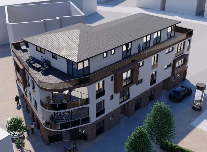 Die Planung umfasst eine kleine Gewerbeeinheit von ca. 51 m², sowie 6 Wohneinheiten in der Größe von 80,94 m² bis 167,34 m², sowie eine Tiefgarage mit PKW Aufzug.