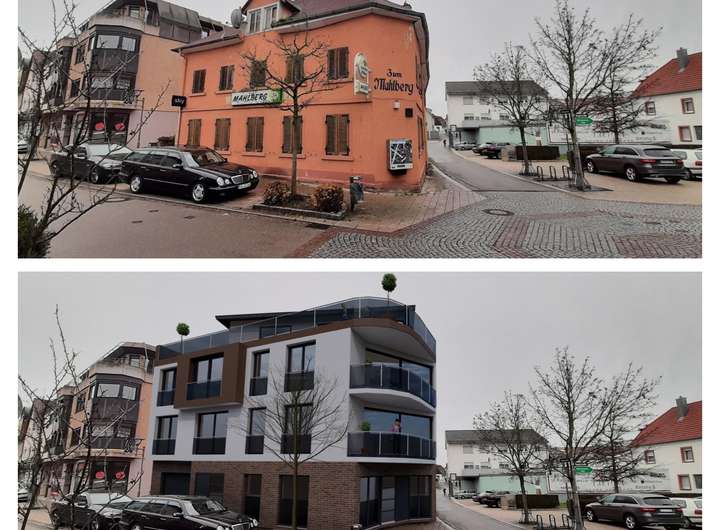 Baugrundstück im Herzen von Malsch inkl. Abrissgenehmigung, Baugenehmigung und bereits erteilter Baufreigabe (roter Punkt) provisionsfrei direkt vom Eigentümer.