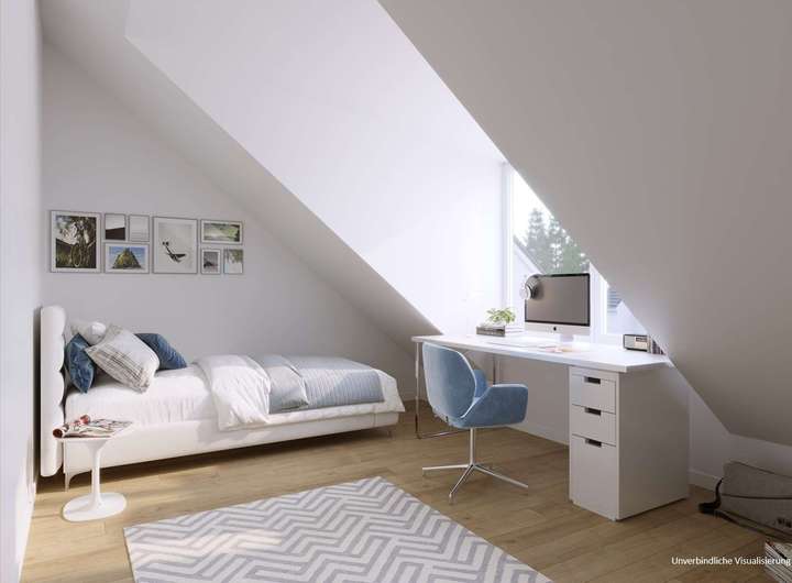 Zwei weitere Zimmer sind im Dachgeschoss untergebracht, sehr hübsch mit Gauben und ideal als Kinder- und ruhiges Arbeitszimmer. Platz zum Abstellen und für die Hobbys gibt’s im vollausgebauten Untergeschoss. Zudem ist im Hauswirtschaftsraum Platz für die Waschmaschine und zum Trocknen der Wäsche.