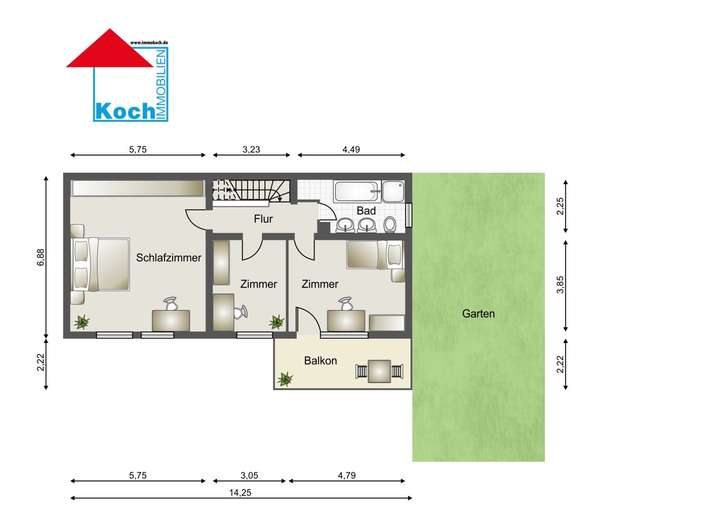 Koch Immobilien übernimmt keine Gewähr für die Aktualität, Vollständigkeit, Qualität und Korrektheit der uns bereitgestellten Informationen. Die Grundrisse und Zeichnungen sind nicht maßstabsgerecht. Die Unterlagen und Angaben wurden uns vom Auftraggeber überlassen.