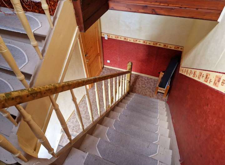 - Treppenhaus: Alte Massivholztreppe, die alle Etagen verbindet
