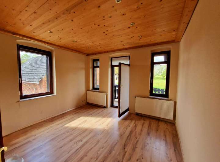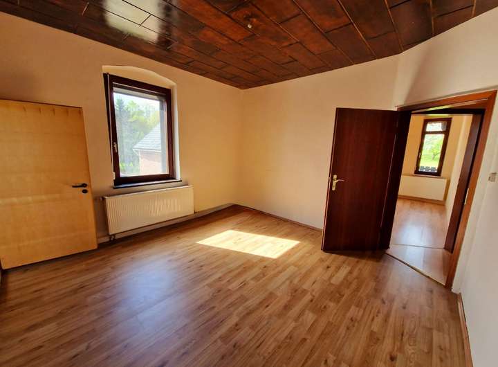 Das Anwesen besteht aus zwei separaten Wohneinheiten. Im Erdgeschoss befindet sich die erste Einheit mit einem Wohnzimmer, Schlafzimmer, Esszimmer, Küche mit älterer Einbauküche und zwei Badezimmern, von denen eines renovierungsbedürftig ist. Die zweite Einheit erstreckt sich über das Ober- und Dachgeschoss und bietet auf rund 120 m² Wohnfläche eine weitere Möglichkeit, sich zu entfalten. Hier finden Sie eine Küche, ein Badezimmer, ein Wohnzimmer mit Balkon und ein Schlafzimmer. Das Dachgeschoss beinhaltet ein Elternschlafzimmer mit angrenzendem Bad, ein kleines Kinderzimmer (ideal als Büro nutzbar) sowie ein weiteres Kinderzimmer. Alle Etagen sind über eine alte Massivholztreppe im Treppenhaus erreichbar.