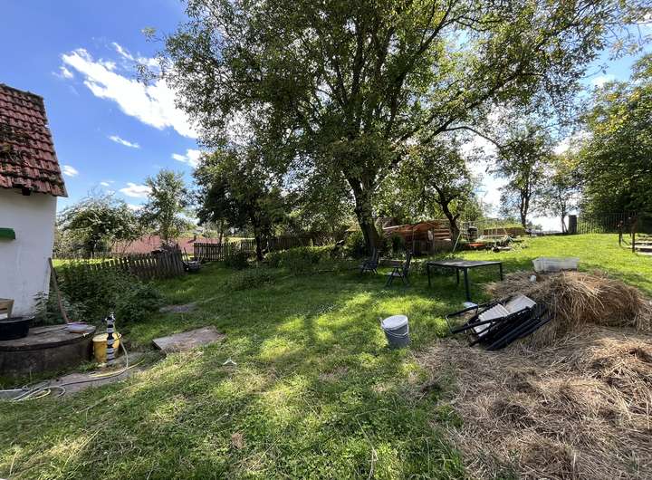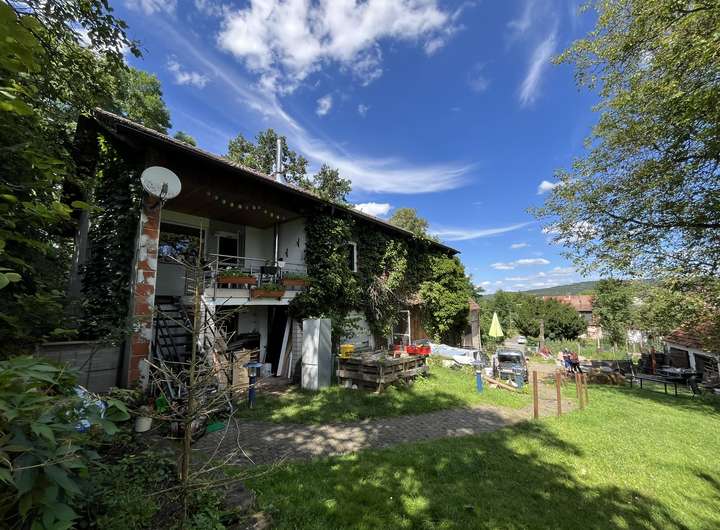 Auf dem großen und weitläufigen Grundstück befindet sich ein in die Jahre gekommenes Zweifamilienwohnhaus. Die Wohnung im Obergeschoss ist seit wenigen Monaten vermietet. Die Miete beträgt .... €/Monat. Der Zustand der vermieteten Wohnung ist in Ordnung. Das Mietverhältnis ist unbefristet.