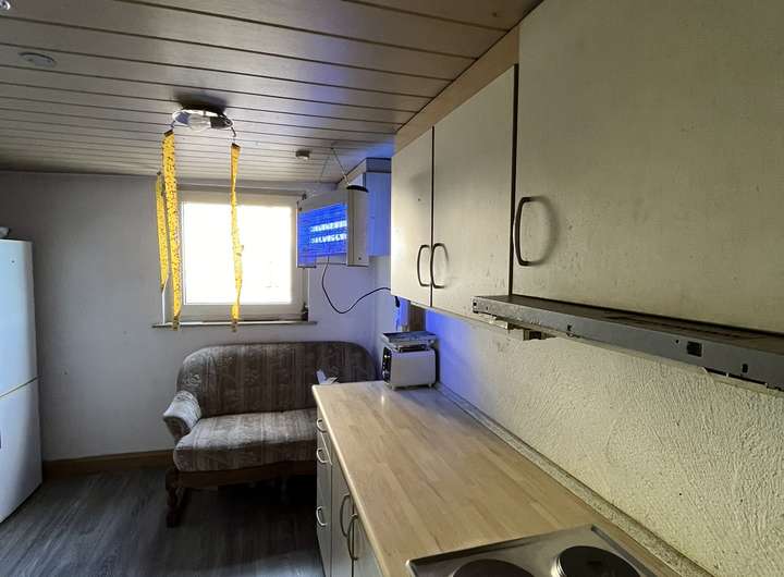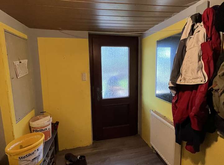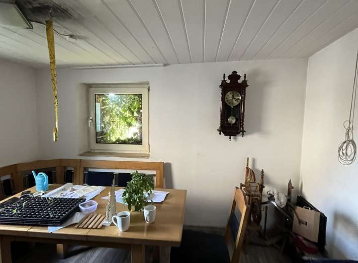 - Bestand: Zweifamilienwohnhaus, obere Wohneinheit vermietet, untere Wohneinheit stark renovierungsbedürftig
