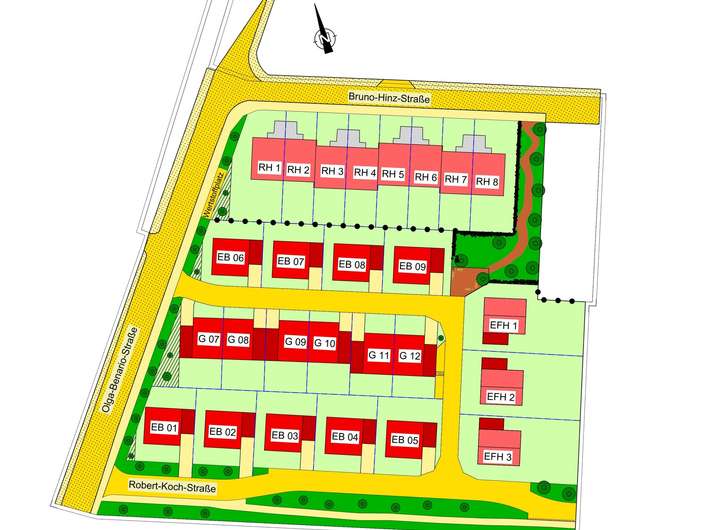 Reihenhäuser: 8 zusammenhängende Grundstücke für Reihenhäuser (je 280 - 400 m²)