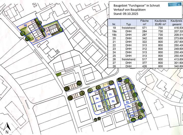 Teilweise sind Bauplätze reserviert und stehen nur nachrangig zur Verfügung. Bitte rufen Sie an wegen des aktuellen Stands.