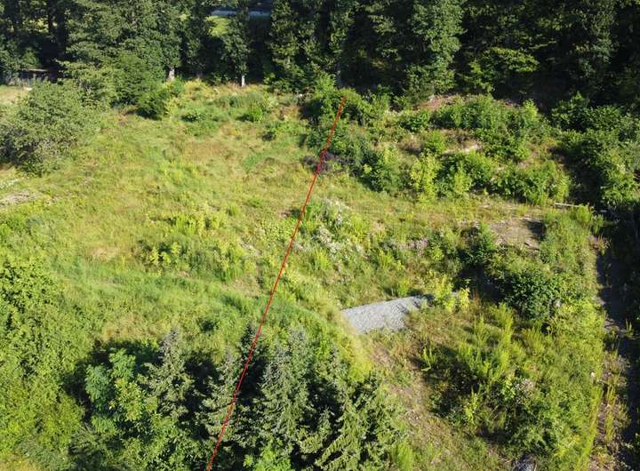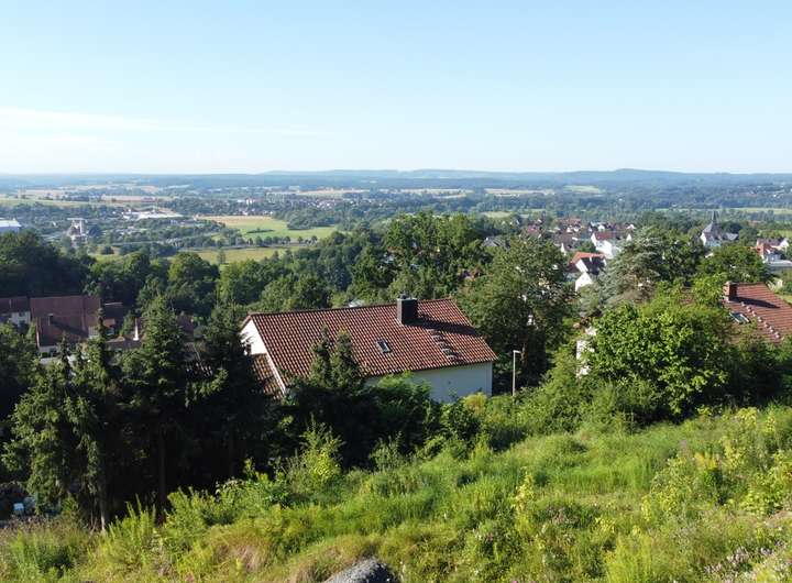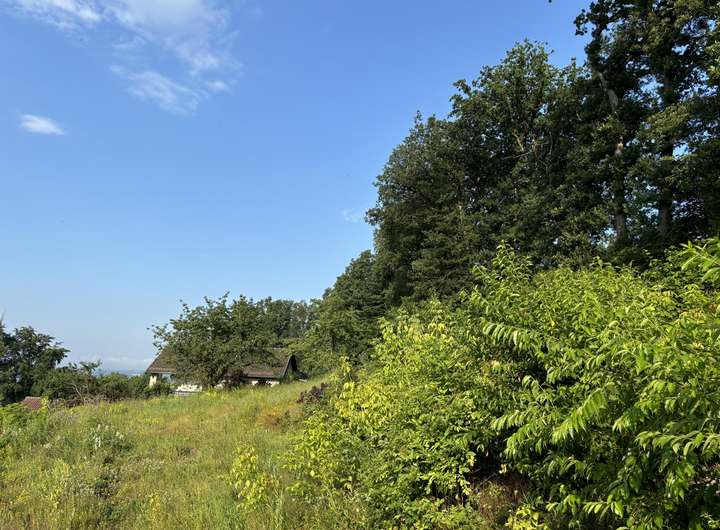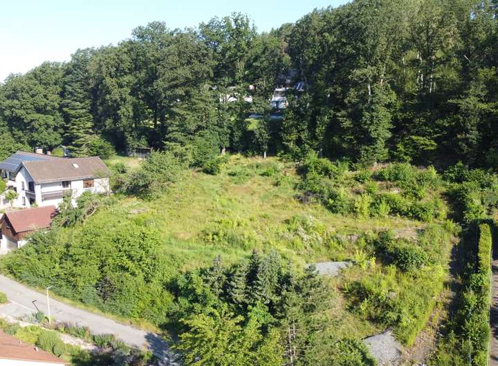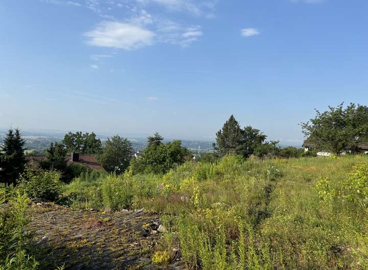 Das Grundstück befindet sich in ruhiger Lage und ist von Einfamilienhäusern in der Nachbarschaft umgeben. Im Norden grenzt ein bewaldetes Grundstück an, das für zusätzlichen Schutz und Privatsphäre sorgt. Der weite Blick in die Umgebung macht das Grundstück besonders attraktiv.