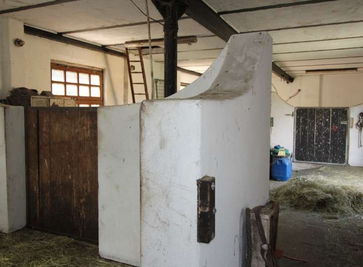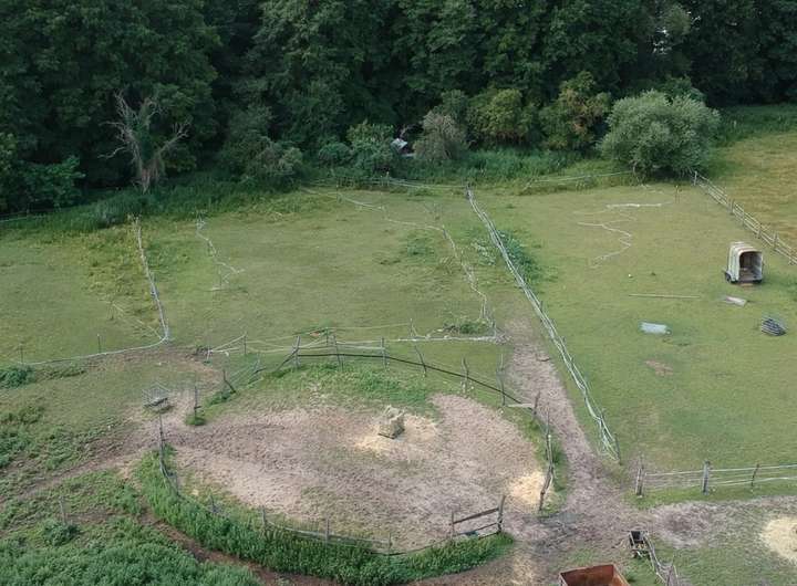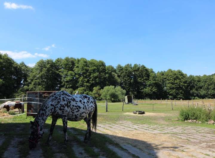 In der klassischen Klinkerstallung befinden sich 4 großzügige Pferdeboxen (siehe Anlage), eine Sattelkammer, Freilaufzone mit angrenzendem Paddock sowie ein neu errichtetes Bad mit Dusche und Waschmaschinenplatz. Der darüber befindliche Heuboden fasst ca. 30 Rundballen. Der Stall verfügt über einen Tiefenbrunnen.