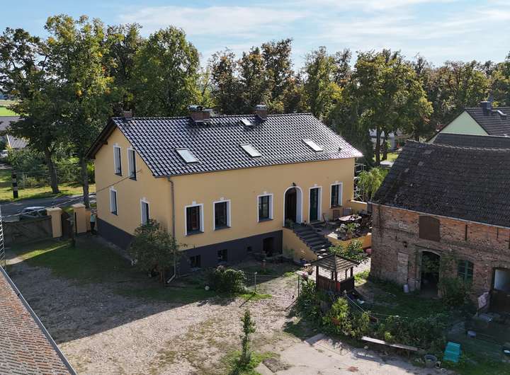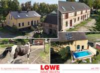 Die Baulichkeiten dieses ländlichen Anwesens wurden um 1900 auf dem ca. 8.609 m² großen Grundstück errichtet und bestehen aus einem voll unterkellerten fasst vollständig sanierten Bauernhaus, einer Klinkerscheune die derzeit als Lager genutzt wird. sowie einer Stallung mit Pferdeboxen. Für eine weitere ehemalige Stallung besteht eine Baugenehmigung zum Ausbau von 2 Wohneinheiten, dieser Ausbau ist begonnen. Anbindend an dieser Stallung befinden sich eine Doppelgarage für Landmaschinen und ein Werkstattgebäude mit Garage.