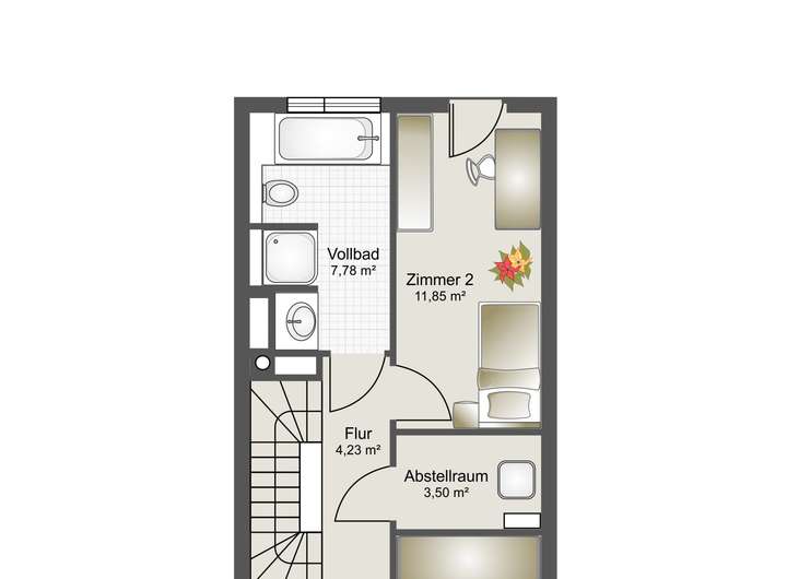 Das Haus verfügt über 4 Zimmer, 2 Bäder und 1 Gäste-WC (Option 1), was für zusätzlichen Komfort sorgt. Alternativ können Sie auch 5 Zimmer, 1 Bad und ein Gäste-WC erhalten (Option 2).