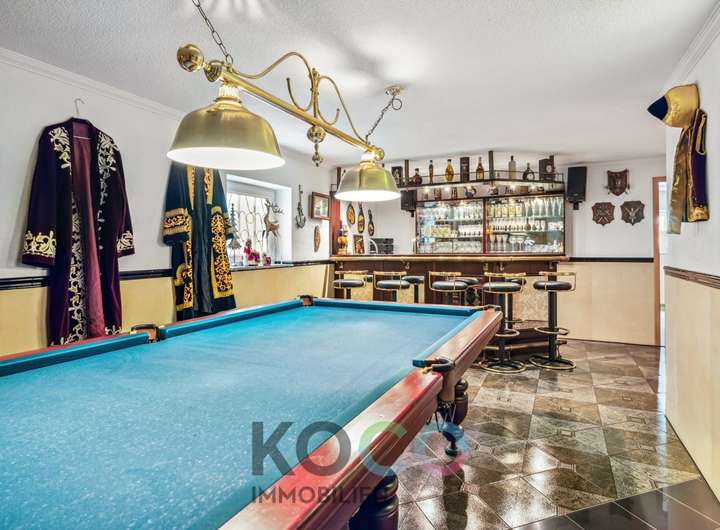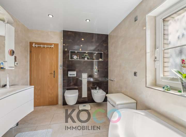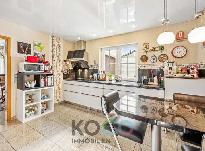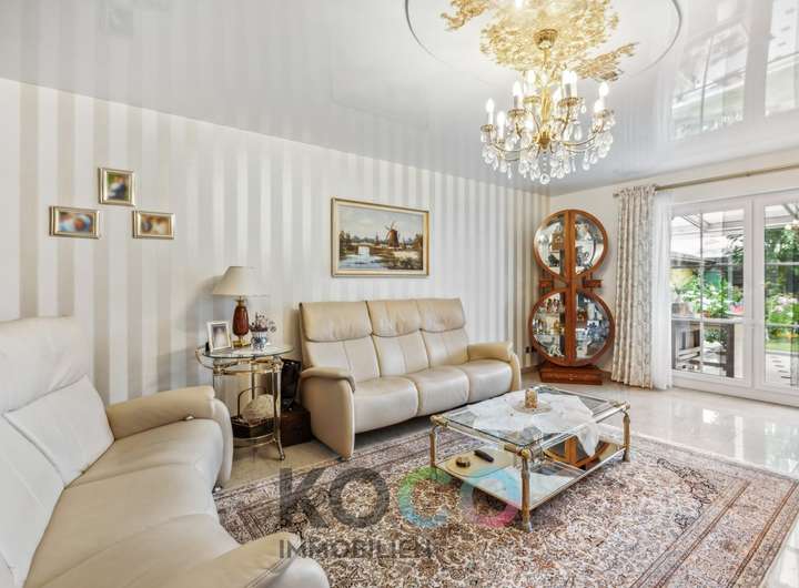 Dieses klassisch zeitlose Anwesen beeindruckt mit ihrer besonders hochwertigen Ausstattung auf allen Ebenen. Das durchdachte Konzept zieht sich durch das gesamte Objekt und besticht mit exklusiven Extras wie maßgeschneiderte hochwertige Einbauten und der Gedanke und Vorrichtung an ein autarkes Mehrgenerationenlifestyle. Dieses Zweifamilienhaus bietet wirklich alles, was man sich von einem derartigen Anwesen erträumt: konsequente Verwendung hochwertiger Materialien, einer repräsentative äussere Form, durchdachte Grundrissgestaltung und wertvolle Ausstattungen. Auf ca. 120 m² im EG erstrecken sich Wohn-, und Esszimmer, Schlafzimmer, hochwertige weiße Küche, Masterbad und Wintergarten. Helle Farben, die lichte Deckenhöhe und das absolute Wohlfühlambiente in allen Wohn- und Schlafräumen prägen den insgesamt eleganten Charakter des Objektes und vermitteln Stil und Modernität. Der herrlich angelegt und intelligent aufgeteilte Garten bietet Ihnen Entspannung pur. Genießen Sie behagliche Abende vor dem offenen Kamin oder vereinen Sie Familie und Freunde im herrlichen Wintergarten zu einem gemeinsamen Dinner. Im Sommer bringt die Klimaanlage Abkühlung. Edles Design, idyllischer Garten und Raumwunder - hier finden Sie Luxus, Komfort und Ruhe vereint.
