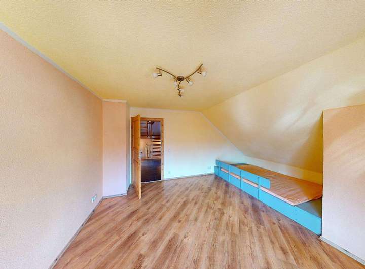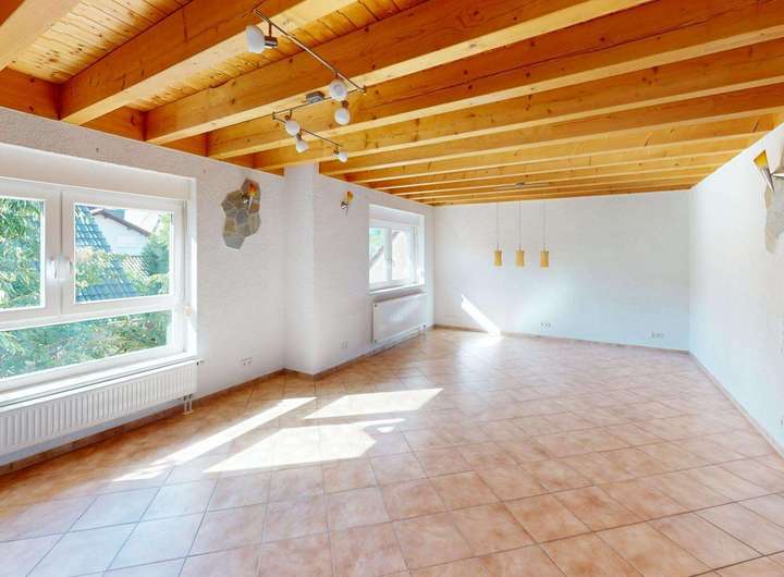 Über einen separaten Außentreppenaufgang erreichen Sie die obere Hauptwohnung mit ca. 160 m² Wohnfläche, verteilt auf zwei Etagen. Obergeschoss & Dachgeschoss.