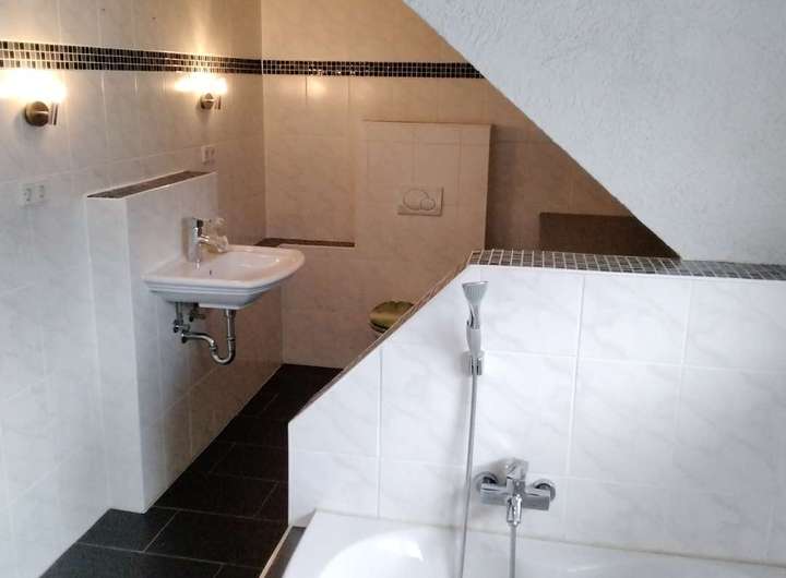 sowie ein großzügiges Tageslichtbad mit Badewanne -Dusche und WC.