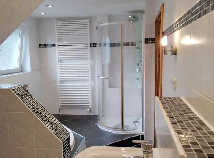 Im Nebengebäude befindet sich die Heizung mit Tankraum, sowie eine zusätzliche Dusche und WC.