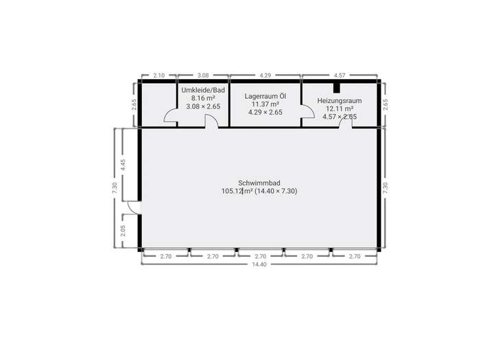 2 Bäder, eins davon im Schwimmbad und eins nachrüstbar