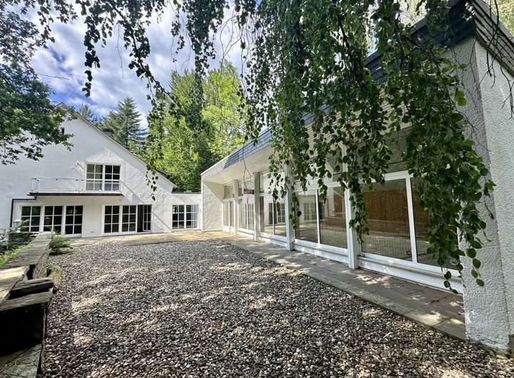 Sie finden hier ein repräsentatives Anwesen am Rande von Wiehl im Oberbergischen Kreis. Diese architektonische Villa im Stile des Bauhaus vereint einen luxuriösen Lebensstil mit hohem Komfort.