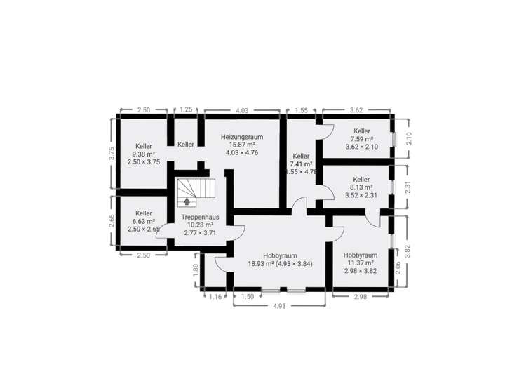 - **Kellergeschoss:** Im Kellergeschoss besteht die Möglichkeit, einen Einliegerbereich zu kreieren, der zusätzlichen Wohnraum oder eine separate Wohnung für Gäste oder Personal bietet.