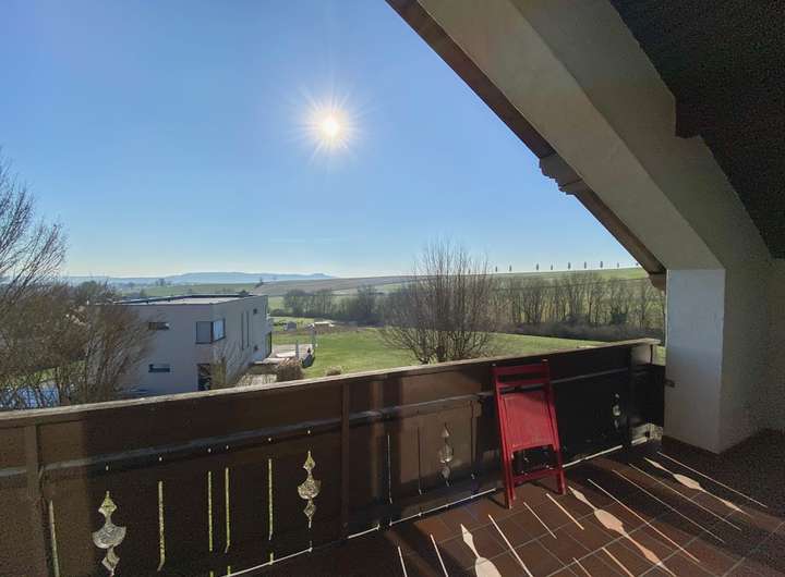 - großzügiges Wohn-/Esszimmer mit Kachelofen und durchgehendem Balkon, der viel Tageslicht bietet und zum Entspannen einlädt