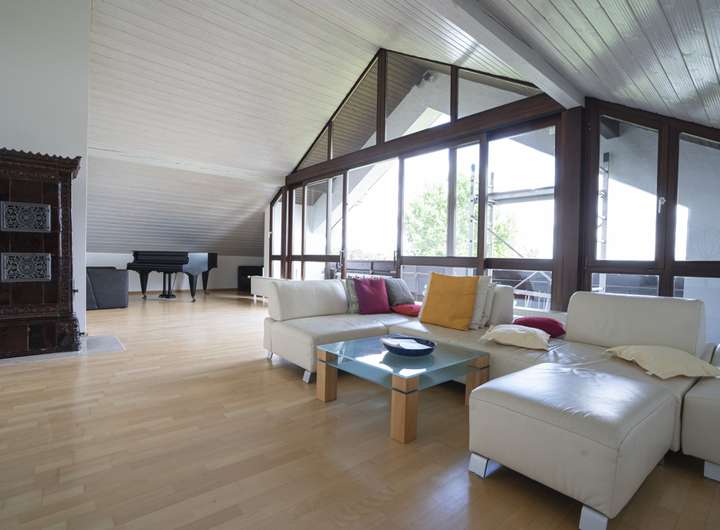 - großzügiges Studio mit Südbalkon und Kachelofen, ideal als Wohn- oder Arbeitsbereich.