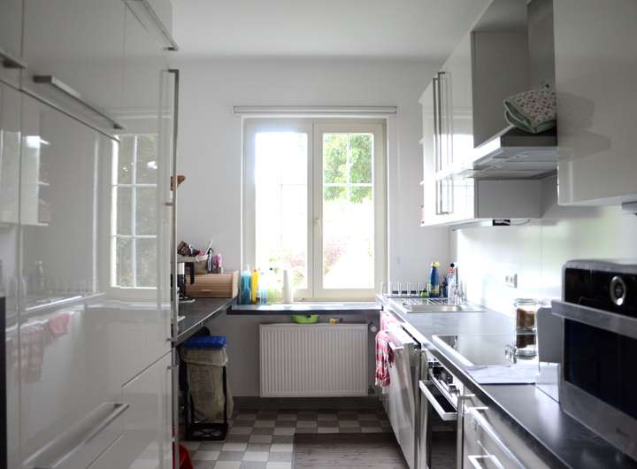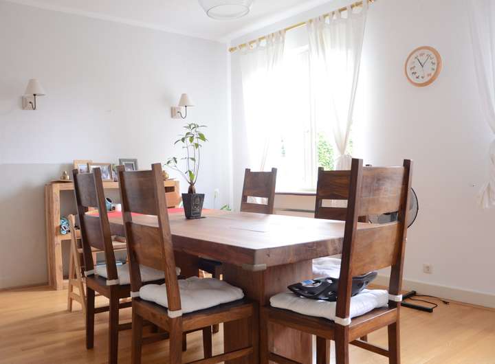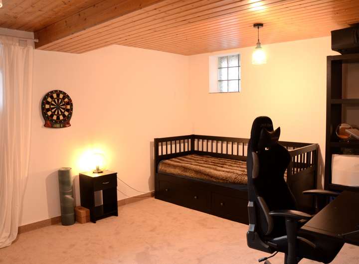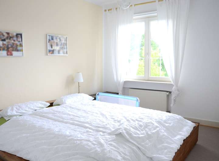 Das Haus wurde 1937 als Doppelhaus errichtet und 1968 durch einen Anbau erweitert. Die kleinere Haushälfte mit 5 Zimmern und ca. 110m² Wohnfläche wurde bis zuletzt vermietet und präsentiert sich in einem gepflegten, gut bewohnbaren Zustand mit einem wesentlich besseren Energiewert als der unsanierte, größere Hausteil. Dieser bietet mit weiteren 6 Zimmern auf ca. 200m² Wohnfläche viel Platz, auch für Familien.