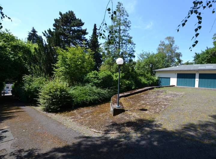 Auf dem oberen Grundstücksteil befindet sich ein zweites Baufenster auf dem sich aktuell ein Garagengebäude mit Stellplätzen befindet.