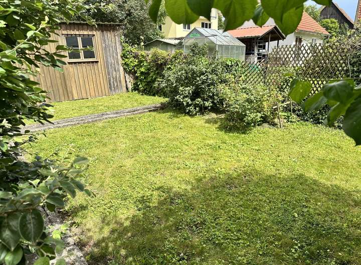 Zum Haus gehört ein kleiner Gartenanteil hinter dem Gebäude. Das Grundstück hat eine Gesamtgröße von knapp 700 m².