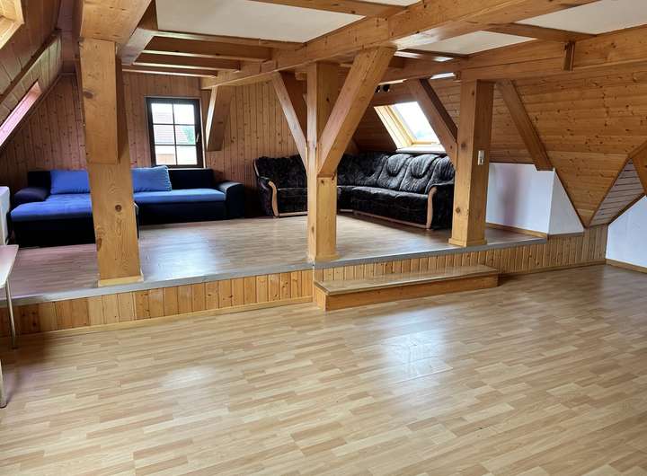 Das Wohnhaus bietet viel Platz für die große Familie, als Mehrgenerationenprojekt oder auch zur teilweisen Vermietung. Auch stehen ausreichend Nebenflächen für eine Vielzahl an unterschiedlichen Hobbys zur Verfügung. Das Haupthaus ist im Erd-/Ober- und Dachgeschoss aufgeteilt in Wohnzimmer, zwei Küchen, zwei Bäder, zwei WCs, 6 Schlafzimmer, Waschküche und Kellerraum. Neben dem Haupthaus befindet sich eine Werkstatt, die mit einer weiteren Wohnung ausgebaut ist. Diese Wohnung hat einen separaten Zugang über eine Außentreppe und könnte über eine Verbindungstüre bei Bedarf mit dem Haupthaus verbunden werden. Aufgrund des sep. Eingangs kann die Wohnung auch sehr gut fremdvermietet werden. Die Fläche über der Garage wurde ebenfalls mit einem weiteren großen Zimmer und zusätzlicher Bühnenabstellfläche ausgebaut. Dieses Zimmer ist entweder über die separate Wohnung über der Werkstatt oder über das Obergeschoss des Haupthauses erreichbar und verbindet somit die beiden Parteien, so dass auch die alleinige Nutzung durch eine Familie denkbar wäre.