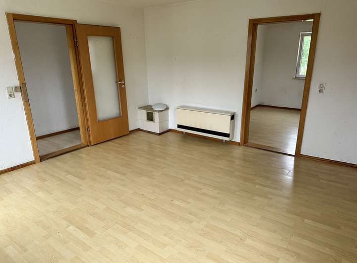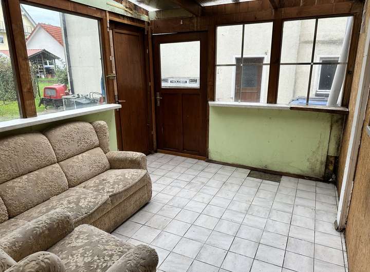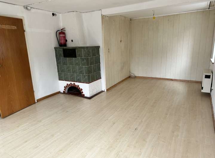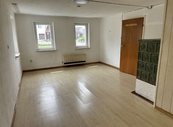Einfache Innenausstattung: Laminat-/Fliesen- und PVC-Böden, Holz- und Kunststofffenster (2fach verglast), Nachtspeicheröfen (Bj. 1994), Kaminofen im EG (neuer Einsatz erforderlich), …