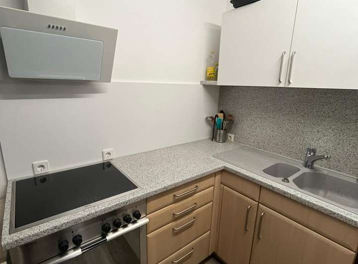 Die Wohnung verfügt über eine hochwertige Einbauküche mit Backofen und Kochfeld