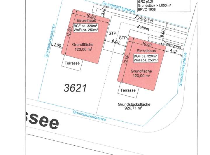 1. Zwei Einzelhäuser auf einem Grundstück (Visualisierung Variante 1)