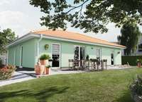 Hier spielt sich alles auf einer Wohnebene ab - Für eine Familie mit zwei Kindern ist der Bungalow 110 ein ideales Zuhause. Er bietet ein gemütliches Wohnzimmer mit Essbereich, ein geräumiges Schlafzimmer und zwei weitere Zimmer. Alle Räume sind dank großer Fenster hell und freundlich. Mit quasi einem Schritt sind Sie mit Ihren Liebsten im Garten und können die Sommerzeit bei einem Grillabend genießen.
