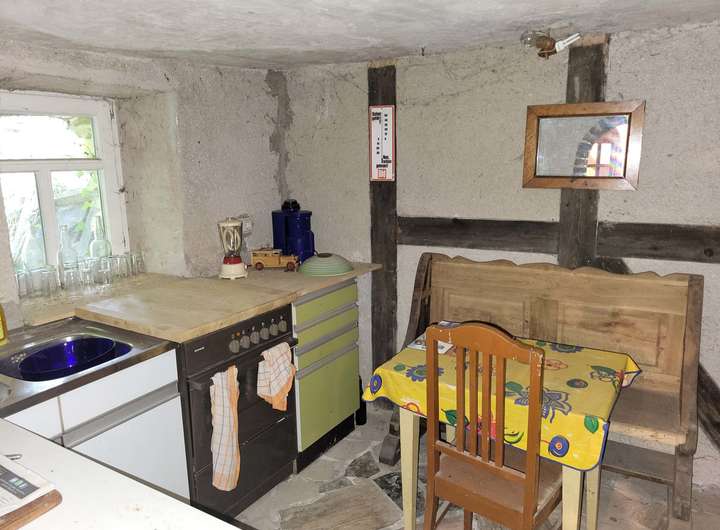 Die solide Bauweise und das sichtbare Fachwerk im Inneren verleihen dem Haus eine besondere Ausstrahlung. Die Raumaufteilung bietet viel kreativen Spielraum – hier können Sie Ihre Ideen und Vorstellungen voll entfalten. Die Raumhöhen von ca. 1,90 m bis ca. 2,20 m unterstreichen den urigen Charakter des Hauses und schaffen eine gemütliche Wohnatmosphäre.
