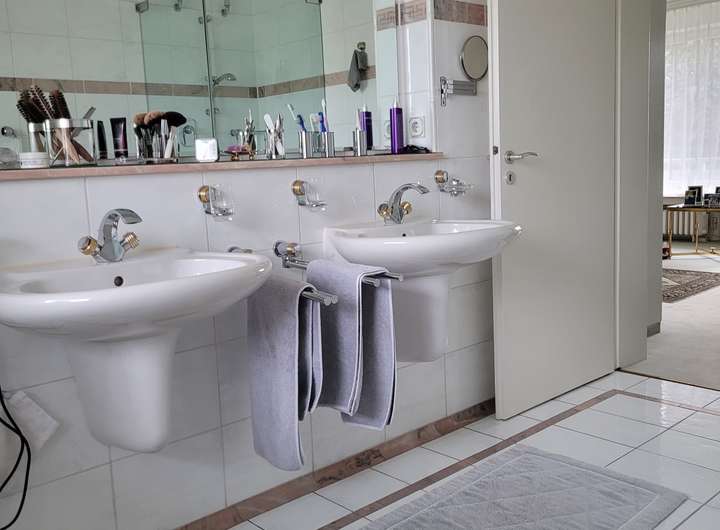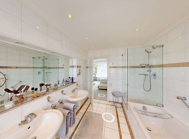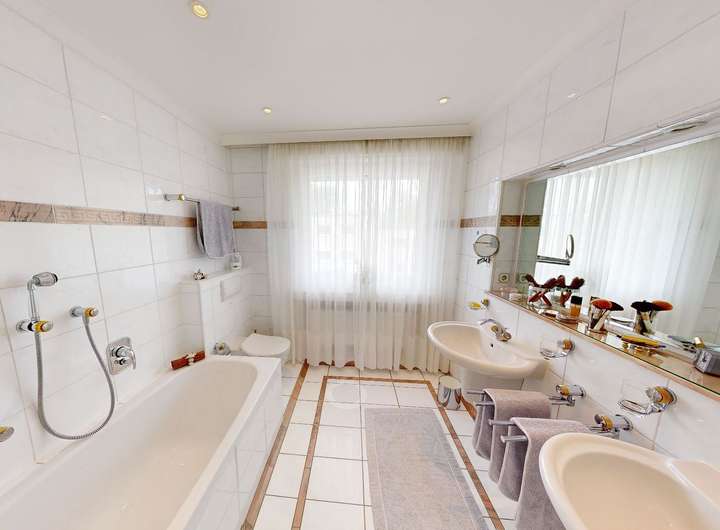 Hochwertige Bäder sowie eine gepflegte Einbauküche runden das Angebot ab, die Terrassen haben groß dimensionierte Markisen.