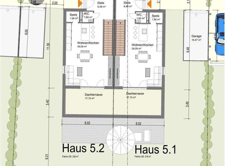 Das hier angebotene Haus 5.1 weist eine kompakte Grundstücksfläche von