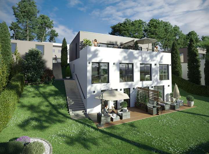 Die Doppelhäuser "Hartwaldwiesen" erfüllen den Anspruch an modernes und zeitloses Wohnen. Großzügige Grünanlagen in Verbindung mit einer effizienten Wasser- und Energieversorgung sowie auf Wunsch Einzelgarage mit großem Stauraum und vorbereiteter E-Ladestation runden das Angebot an Annehmlichkeiten ab.