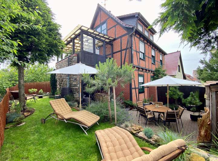 Vollmöbiliertes Fachwerkhaus mit Blick über den Dächern von Burg zu verkaufen!