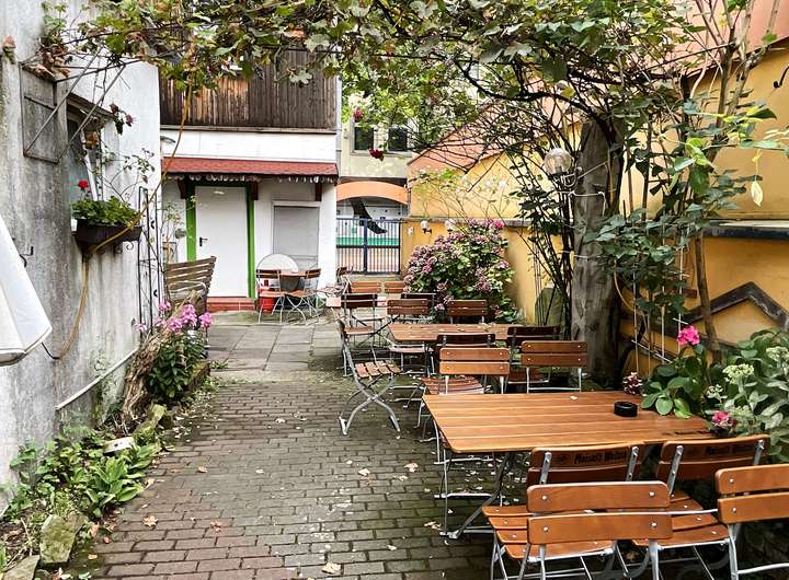 Abgerundet wird der untere Bereich durch einen schönen, gemütlichen Biergarten mit acht Tischen und 48 Sitzplätzen, 2 Stehtischen und einem großen Holzkohlegrill. Der Biergarten ist direkt vom Gesellschaftsraum und von außen zugänglich.