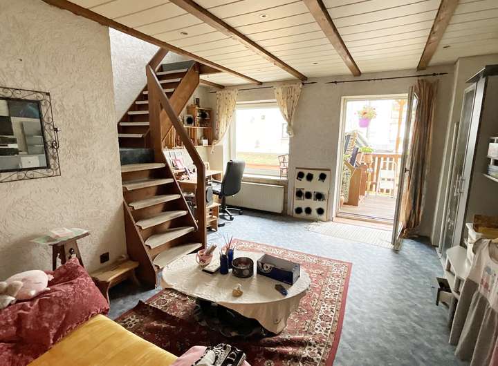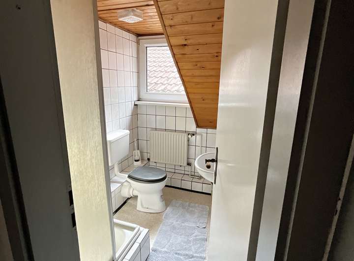 Zusätzlich besitzt die 1. Etage einen ca. 98 m² großen, nicht ausgebauten Raum mit offenem Bereich zum Spitzdach, der zur Zeit als Werkstatt genutzt wird, in dem aber viel Potenzial für weitere Wohnzwecke steckt.