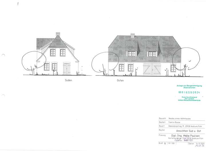 Der uns vorliegende Entwurf stammt von der Architektin, Frau Holle Paulsen, die ihrerseits für eine stimmige, sanfte in und die Umgebung passende Architektur steht.