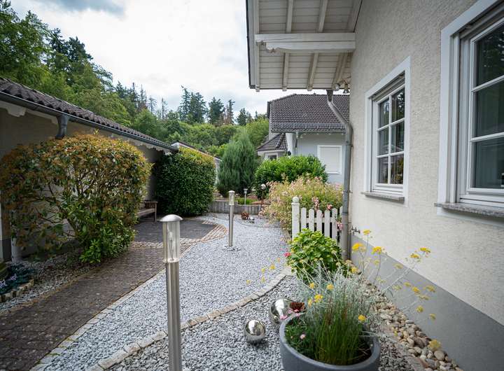 *Böden: Parkett, Fliesen & Teppich * Einbauküche mit Einbaugeräten * Teilweise elektrische Außenrollläden * Kamin * Tageslichtbad mit Wellness Badewanne und Dusche * Tageslicht Gästebad mit Dusche * Tageslichtbad mit Dusche in beiden Einliegerwohnungen * Hochwertige Armaturen in den Bädern * Halb-überdachte Dachterrasse * Beschattung für den Wintergarten * Diverse Einbaumöbel * Begehbarer Kleiderschrank * Balkon * Gasheizung mit zwei getrennten Kreisläufen für Fußbodenheizung und Heizkörper * Zisterne und Frischwasseraußenzapfstelle * Doppelgarage (elektrisch)