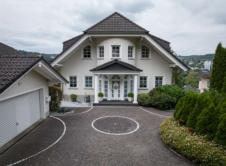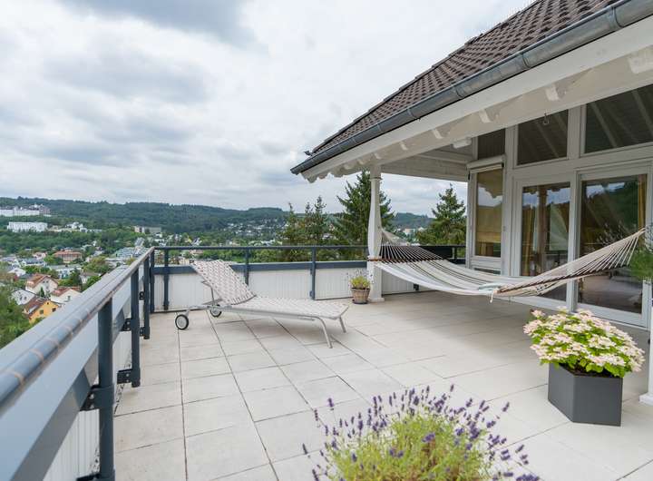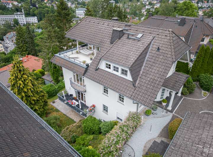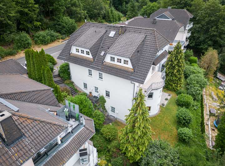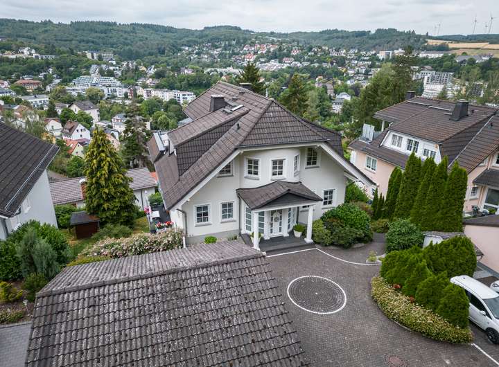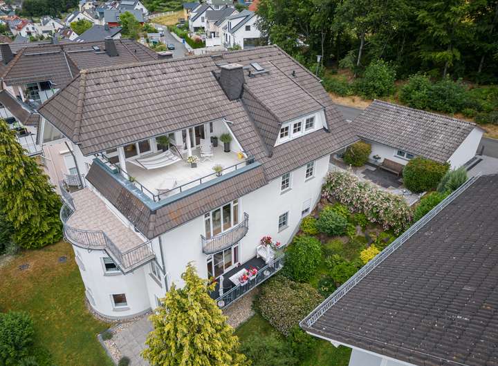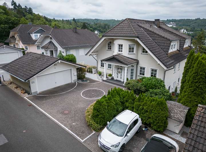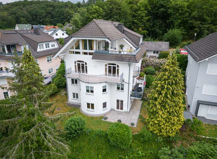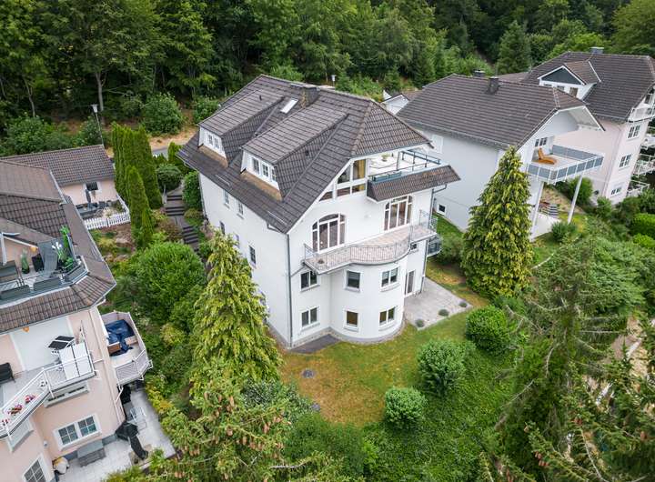 Dieses freistehende Mehrfamilienhaus in ruhiger, äußerst begehrter Bad Schwalbacher Lage bietet Ihnen eine außergewöhnliche Gelegenheit eines exklusiven Wohnerlebnisses mit besonderem Weitblick. Dieses prächtige Dreifamilienhaus, erbaut im Jahr 1994 hat eine Gesamtfläche von 508 Quadratmetern, wovon 418 Quadratmeter Wohnfläche sind. Die Grundstücksgröße beträgt 812 Quadratmeter. Über eine Sackgasse gelangen Sie auf den geräumigen Hof mit einer Doppelgarage und zwei zusätzlichen Parkplätzen. Ein frisch renoviertes Außenkleid (Fassade, Gauben und Dach) unterstreicht die Hochwertige und sehr gepflegte Substanz des Anwesens (Bilder noch vor Renovierung). Abgetrennte Wohnungen mit separaten Eingängen ermöglichen ein abgegrenztes Miteinander. Die Hauptwohnung im Erdgeschoss und ersten Obergeschoss überzeugt mit einem großzügigen Eingangsbereich und einer offenen lichtdurchfluteten Gestaltung. Das große Wohn- / Esszimmer mit Parkettboden, Kamin und einer Aussicht wie aus dem Bilderbuch lässt keine Wünsche offen. Bodentiefe Fenster sorgen für viel Tageslicht neben einem großen Balkon. Der Kamin sorgt in der kühleren Jahreszeit für ein besonderes Wohngefühl. Küche, Badezimmer, Abstellraum, Hauswirtschaftsraum, und Arbeitszimmer runden das Erdgeschoss ab. Über eine Treppe - welche auch als Stilelement fungiert - gelangen Sie in den oberen Bereich des Hauses mit insgesamt drei Zimmern, einer Ankleide und einem Bad. Der Wintergarten (Schlafzimmer) mit wunderschönem Ausblick und Zugang zu einer großen Dachterrasse ist nur eines der Highlights. Ein Geräumiger Speicher bietet Lagermöglichkeiten neben großzügigen Kellerräumen. Eine Fußbodenheizung auf beiden Etagen sorgt für die richtige Temperatur und niemals kalte Füße. Die zwei Einliegerwohnungen im gehobenen Standard überzeugen mit schöner Aussicht, großzügigen Balkonen, und einer Terrasse mit Gartenzugang. Die Aussicht kann nicht verbaut werden.