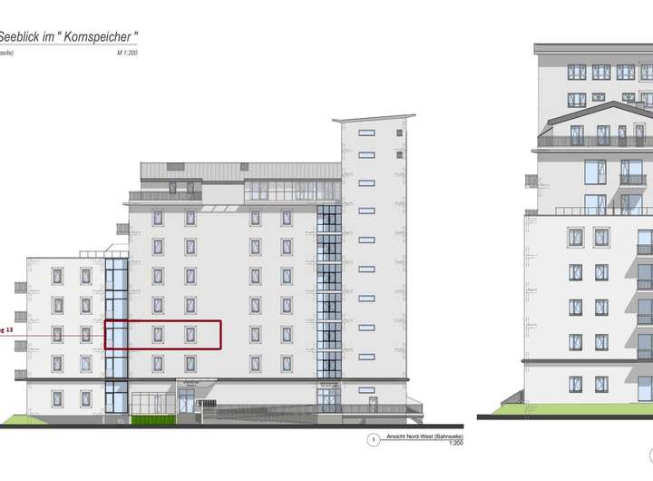 Im alten denkmalgeschützten Kornspeicher entstehen im 11-geschossigen Kornspeicher mit 6-geschossigem Anbau insgesamt 48 attraktive Eigentumswohnungen überwiegend mit schönen Seeblick. Im Erdgeschoss befindet sich ein Wellness -Bereich mit einer Lounge Bar. Im Untergeschoss lädt ein SPA-Bereich mit