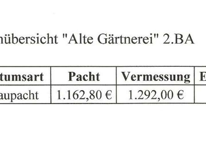 jährliche Erbbaupacht und die Erschließungskosten finden.