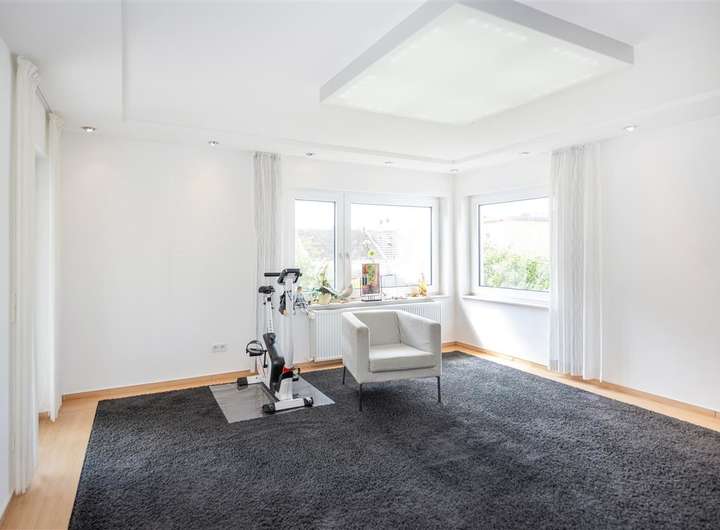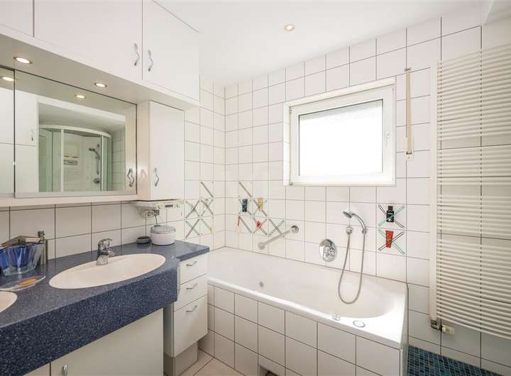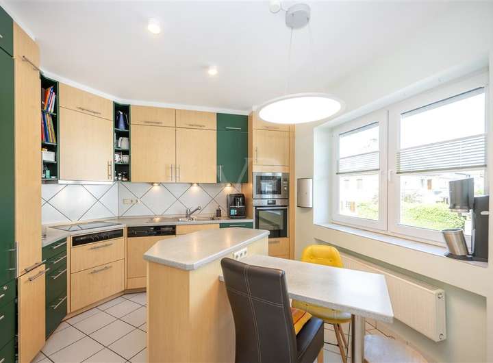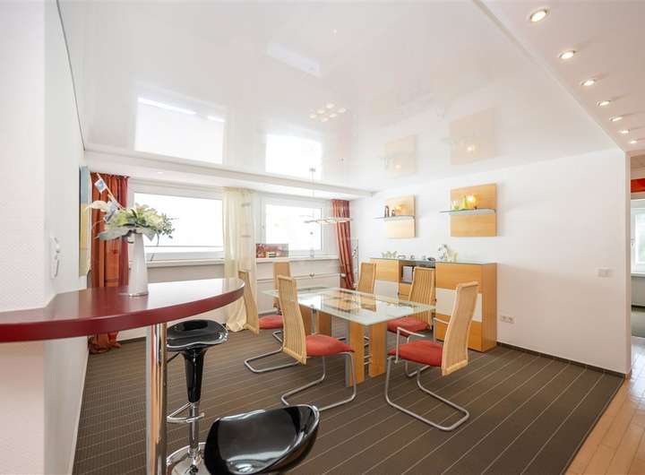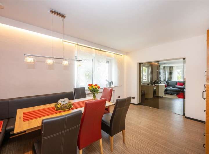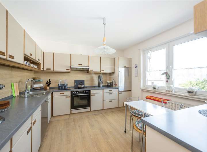 o Wohnküche (Hochwertige Einbauküche in 2006 erneuert), Wohnzimmer mit Balkonausgang (mit Markise), Esszimmer (2008 renoviert), Bad (1996 modernisiert), Büro (2008 renoviert), Schlafzimmer (2008 renoviert) mit begehbarem Kleiderschrank, aktuell noch leerstehend