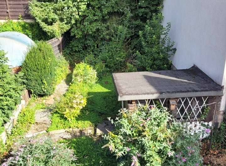Die Wohnung im Erdgeschoss mit einer Größe von rund 77 m² steht leer und ist in einem renovierungsbedürftigen Zustand. Sie teilt sich auf in 2 Zimmer nebst KDB und hat einen Ausgang in den Garten.