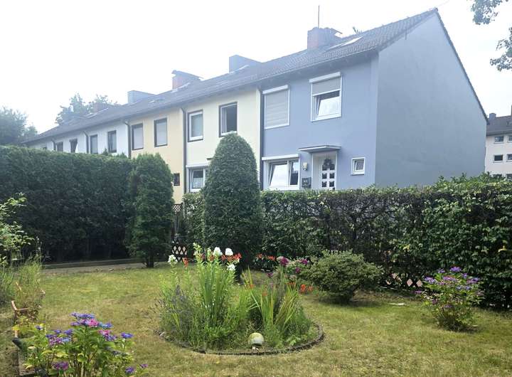 Diese Immobilie besticht durch ihr für ein Reihenhaus großes nach Südwesten ausgerichtetes sonniges Grundstück am Ende einer kleinen Reihenhauszeile. Das Haus ist voll unterkellert und hat ein ausgebautes Dachgeschoss mit großer Gaube. Hier können Sie sich Ihren Traum von den eigenen vier Wänden mit Garten und großzügigem Raumangebot verwirklichen. Das Gebäude stammt aus dem Jahr 1959 und ist massiv gebaut. Es wurde 1986 saniert und in den Folgejahren sukzessive Instand gehalten und modernisiert. So wurden 2006 Dach (Flocken) und Außenwände gedämmt und in den darauffolgenden Jahren die Fenster und Außentüren erneuert. Die Gas-Heizung mit zentraler Warmwasserversorgung wurde erst 2019 durch eine neue Heizungsanlage ersetzt und ist ca. 4 Jahre alt. Das Raumangebot bestehend aus großem Wohn- und Essbereich mit Durchgang zum beheizten Wintergarten, Küche und modernem Gäste WC im Erdgeschoss, zwei Zimmern und innenliegendem Bad im Obergeschoss, sowie einem großen teilbaren Zimmer im Dachgeschoss, wird ergänzt durch 5 Kellerräume und den Spitzboden. Der nach Süden ausgerichtete Wintergarten verfügt bei Bedarf über einen umfangreichen Sonnenschutz. Die ihn umgebende Terrasse im Garten ist über eine Wendeltreppe zu erreichen. Auch der Keller ist mit dem Garten über eine Außentreppe verbunden. Auf allen Wohnebenen verfügt die Immobilie über elektrische Rollläden und Insektenschutz an den Fenstern und zum Teil auch an den Türen. Die Kellerfenster und das seitliche Wohnzimmerfenster sind zudem mit Schutzgittern versehen. Bei allen Außentüren wurde auf eine einbruchhemmende Ausstattung geachtet. Der Garten kann auch bei regnerischem Wetter genutzt werden, da ein Teil der Terrasse mit einem Pavillon überdacht ist. Direkt hinter diesem Teil der Terrasse befindet sich der Carport mit zwei Stellplätzen. Die vielen Extras machen diese Liegenschaft zu einem sehr komfortablen Zuhause. Wenn wir mit diesem attraktiven Immobilienangebot Ihr Interesse geweckt haben, vereinbaren Sie bitte einen Besichtigungstermin mit uns. Wir freuen uns auf Sie.