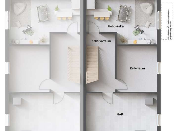 Das Doppelhaus Aura 125 überzeugt nicht nur mit seinen hellen und gemütlichen Räumen, sondern auch mit einer cleveren Grundrissgestaltung. Der vorhandene Platz wird optimal genutzt. Im Eingangsbereich kann ein praktischer Einbauschrank untergebracht werden und die Ankleide im Schlafzimmer bietet viel Stauraum. Auch der Platz unter der einläufige Treppe kann genutzt werden, zum Beispiel für ein Bücherregal oder eine kuschelige Spielecke für die Kleinen.