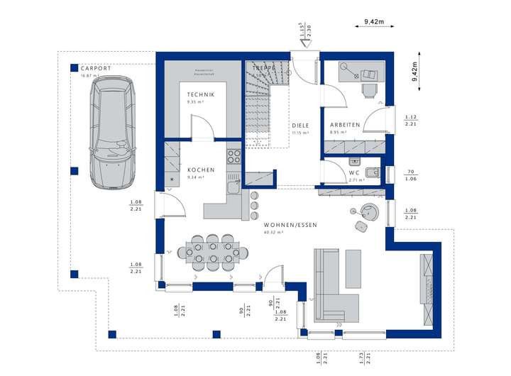 Im Erdgeschoss werden Wohnen, Essen, Kochen und Arbeiten perfekt miteinander kombiniert. Alles ist dort, wo es hin-