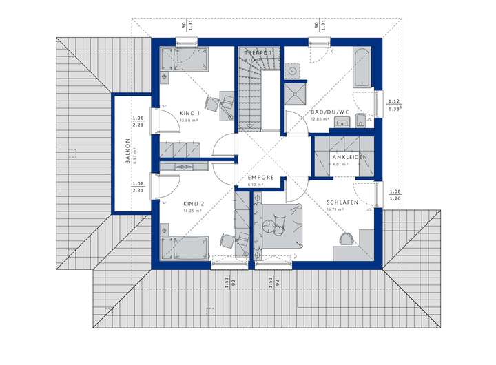 im Obergeschoss, die als ideale Rückzugsräume aus dem Alltag dienen.