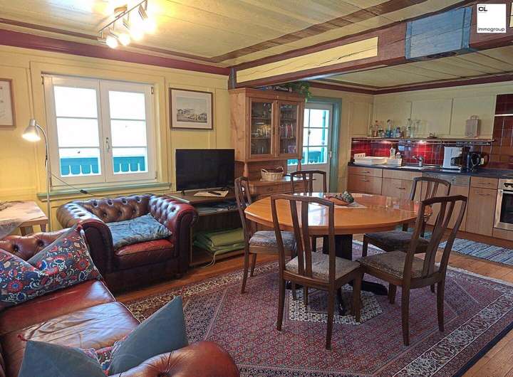 Das rustikale Ferienhaus Völlegg bietet einen gemütlichen Wohnbereich mit Kachelofen. Insgesamt verfügt das Haus über ein Doppelzimmer mit Babybett und einem Schlafzimmer mit 2 getrennten Betten und einem Schlafzimmer mit 3 getrennten Betten.